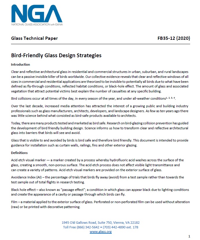Bird-Friendly Glass Design Strategies (FB35-12) - Downloadable Out of Stock