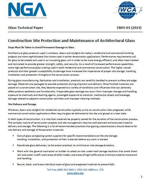 Construction Site Protection and Maintenance of Architectural Glass (FB03-03) - Downloadable Out of Stock