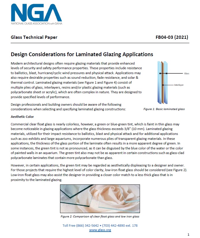 The Technical Services Division of the National Glass Association (NGA) has produced this Glass Technical Paper solely for informational purposes. This Paper was developed by dedicated member volunteers and subject matter experts. The original version of this document was approved and published in 2003. This edition of the paper was updated and published in November 2021.