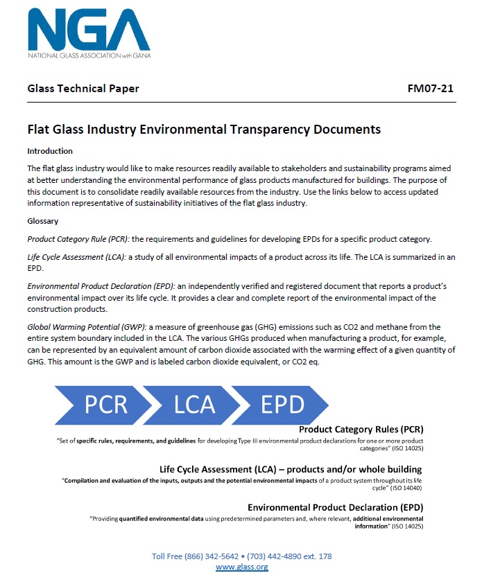 Flat Glass Industry Environmental Transparency Documents (FM07-21) - Downloadable Out of Stock