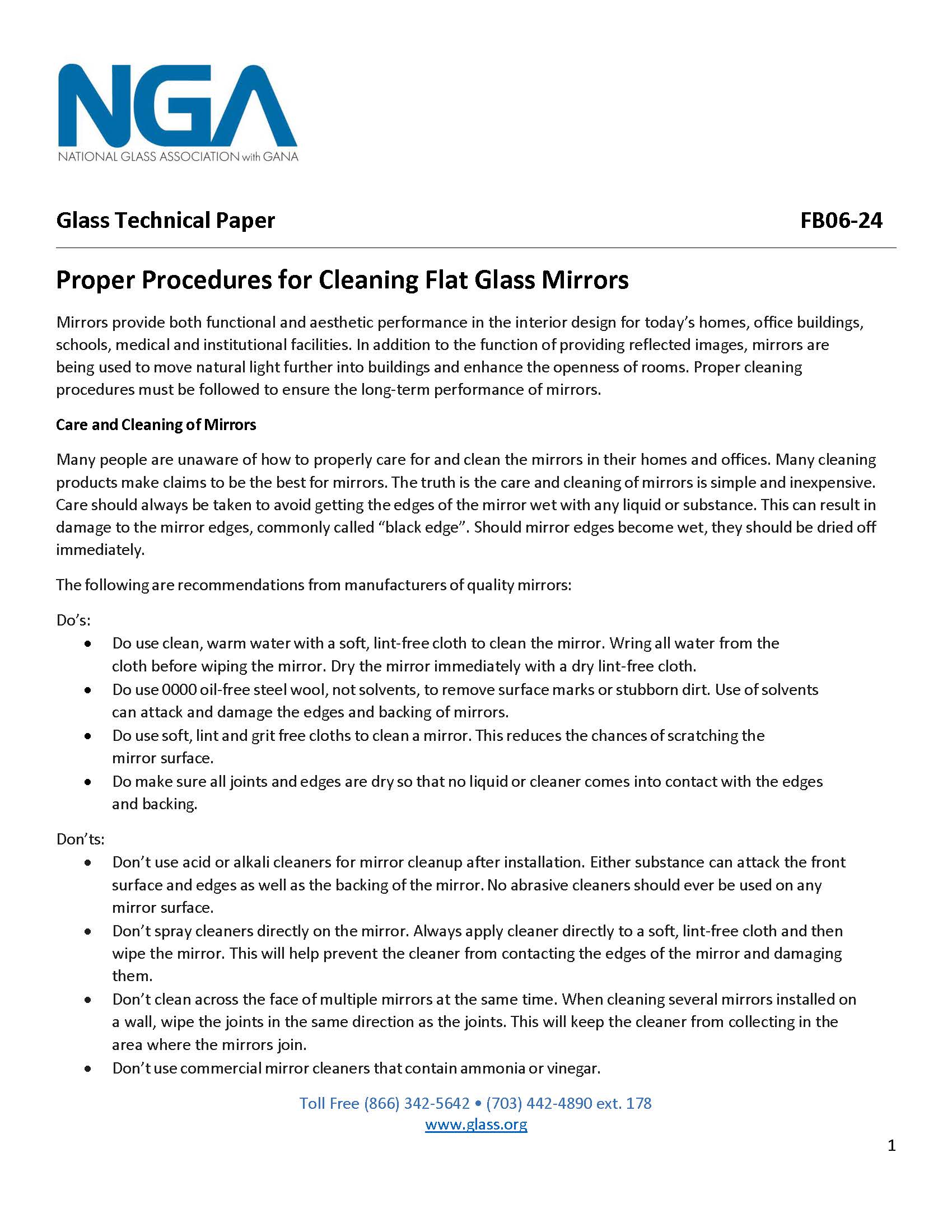 Proper Procedures for Cleaning Flat Glass Mirrors (FB06-24) - Downloadable Out of Stock