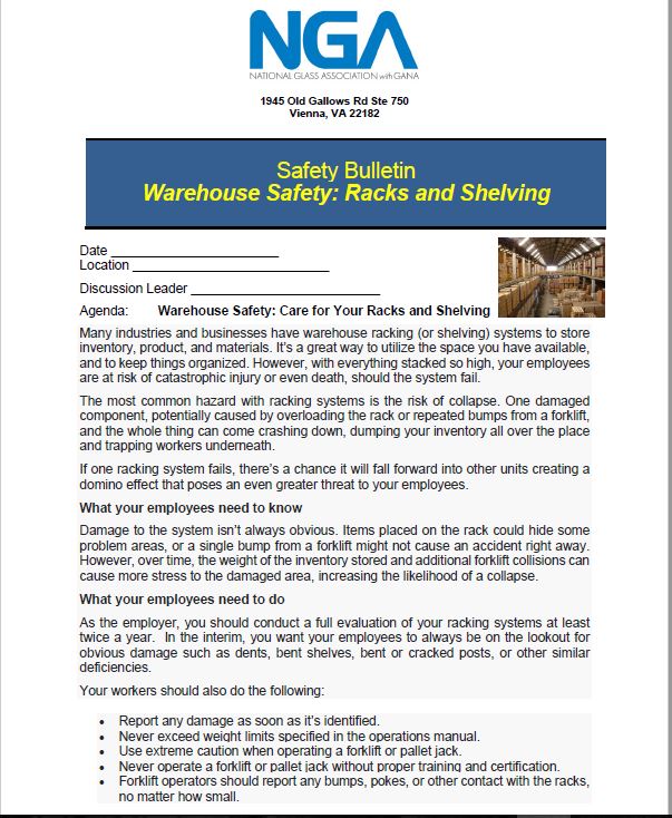 Safety Bulletin: Warehouse Safety: Racks and Shelving - Downloadable Out of Stock