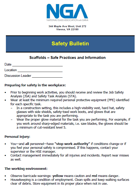 Safety Bulletin: Scaffolds--Safe Practices and Information - Downloadable Out of Stock
