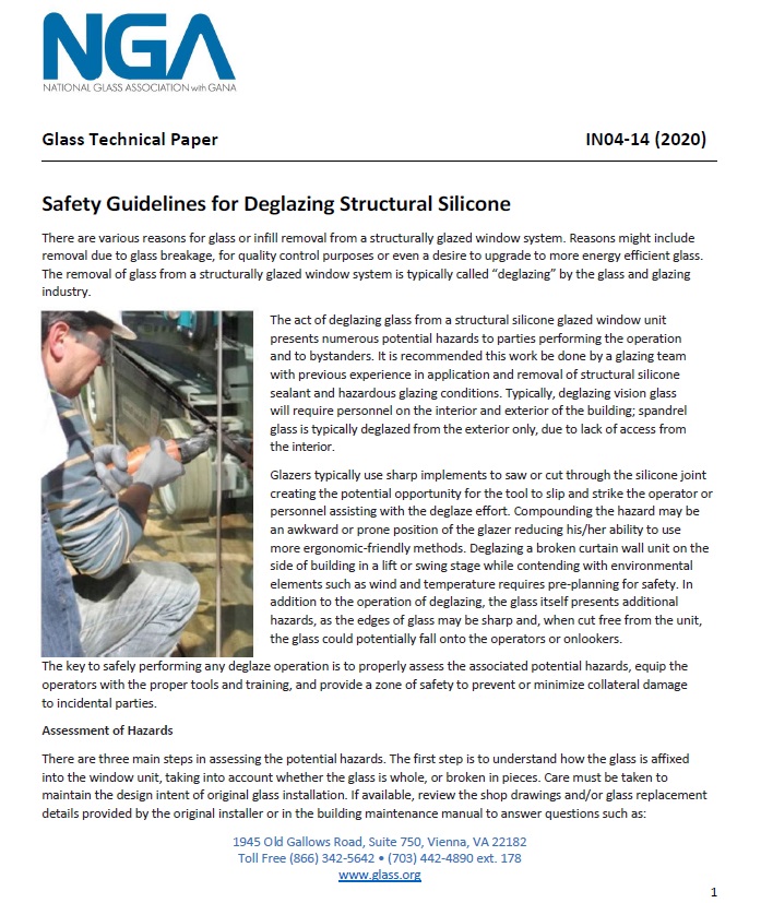 Safety Guidelines for Deglazing Structural Silicone (IN04-14) - Downloadable Out of Stock