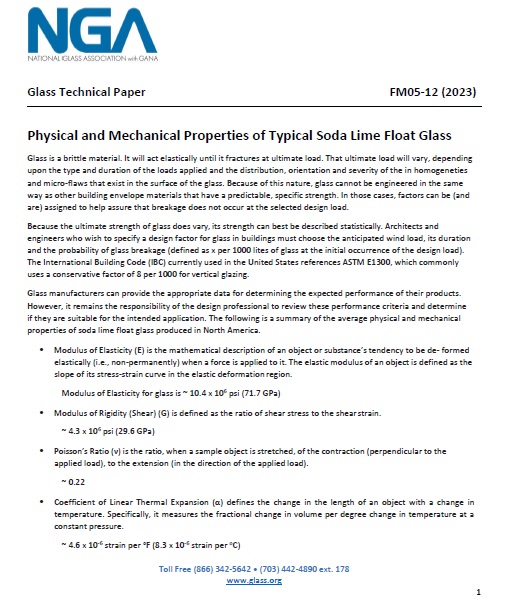 The Technical Services Division of the National Glass Association (NGA) has produced this Glass Technical Paper solely for informational purposes. This Paper was developed by dedicated member volunteers and subject matter experts. The original version of this document was approved and published in 2012. This version of the document was updated and published in July 2023.