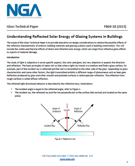 Understanding Reflected Solar Energy of Glazing Systems in Buildings - FB60-18 (2023) - Downloadable Out of Stock